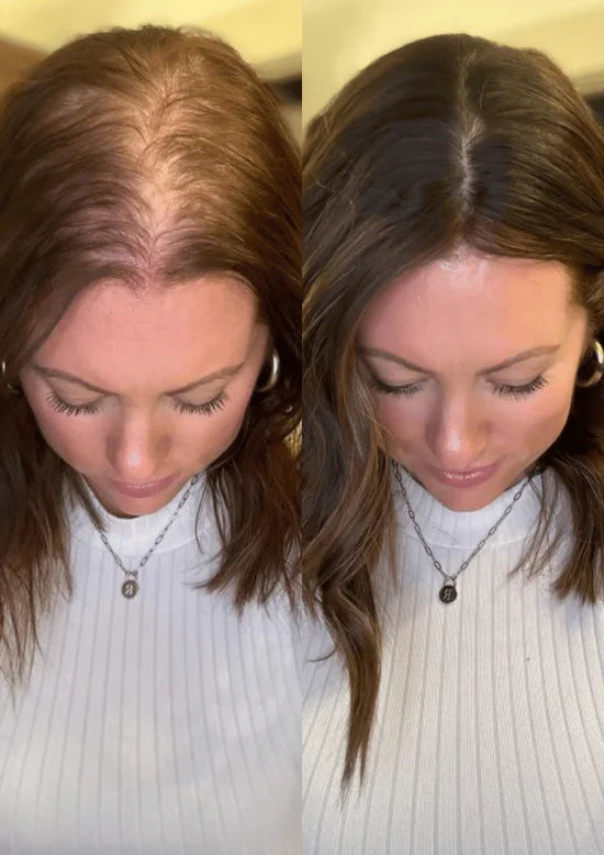 Noticed less hair fallout, visibly thicker, fuller strands after 8 weeks